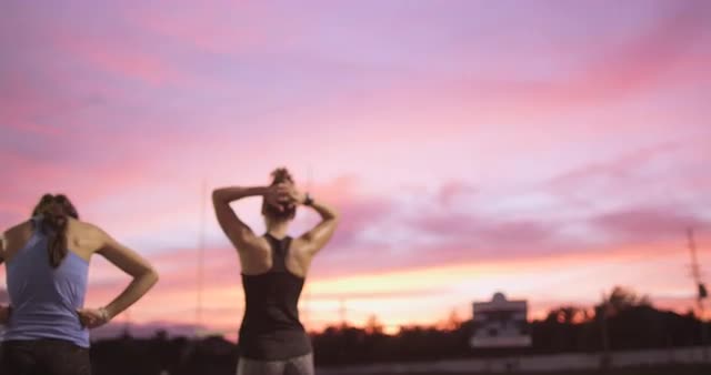 > Athletes resting after working out