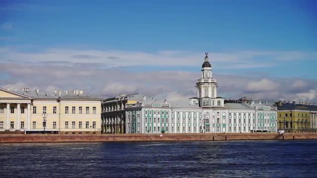 Sunny Waterscape With Neva River Embankment, St.petersburg, Russia
