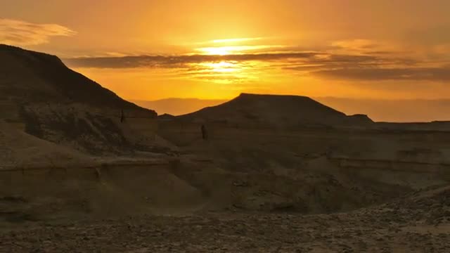 87634 - Panning shot of Clouds moving across desert sky during orange sunset