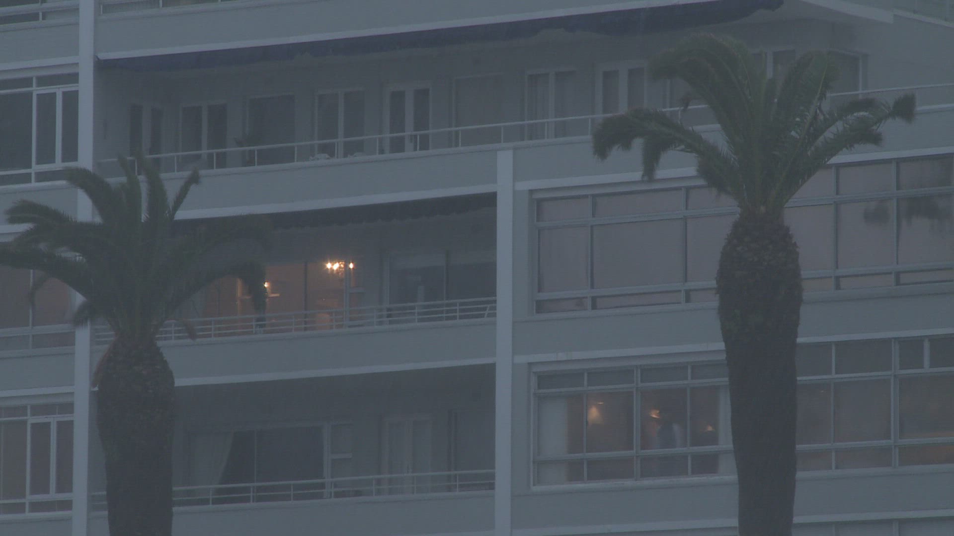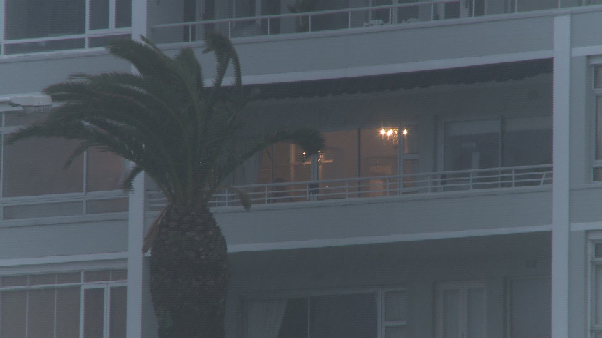 2550213 - Wind and rain increase over building as Hurricane Katrina arrives