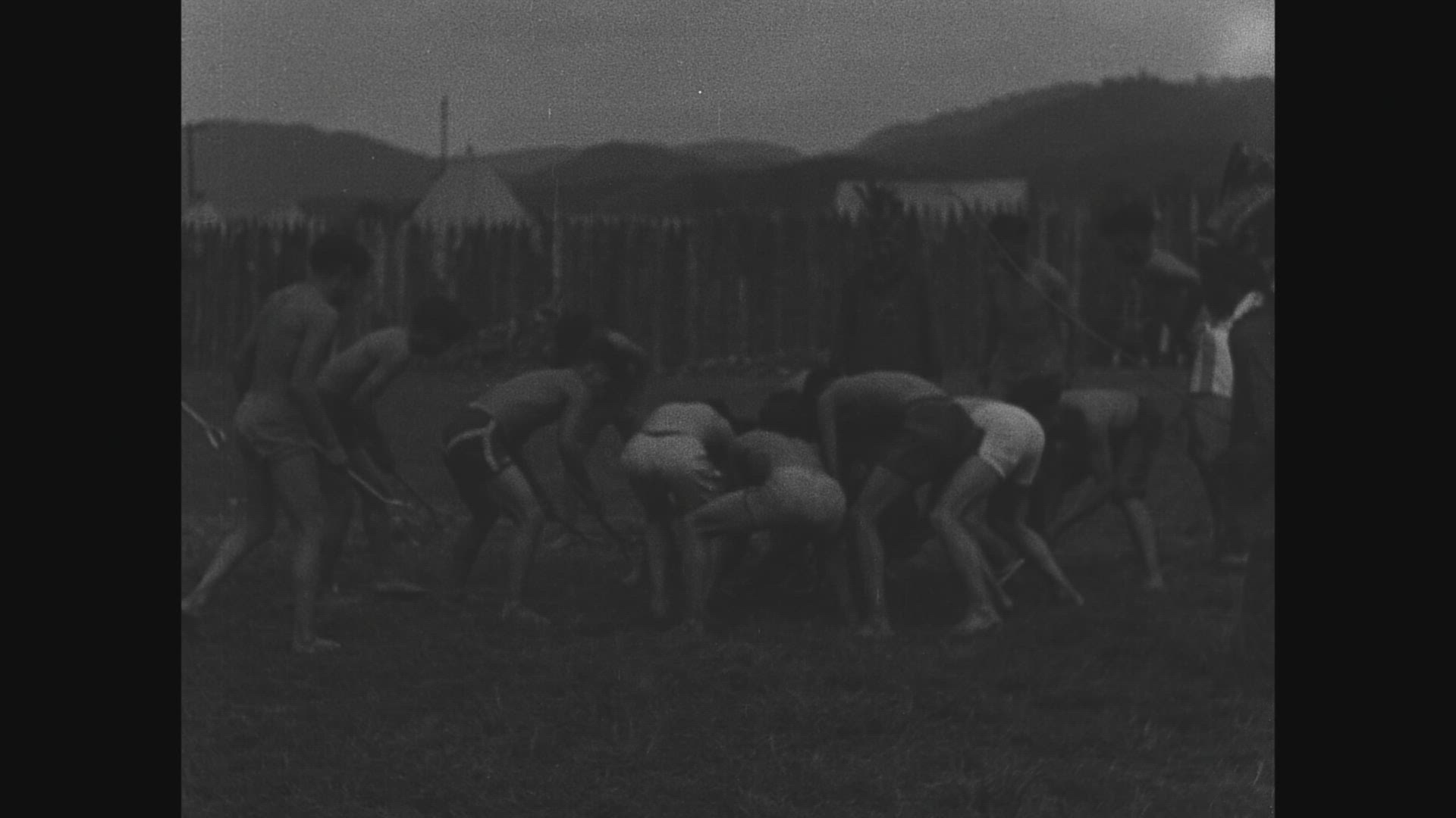 Man Playing Flute and Dancing Indians Performers in National Costumes Feathers Ribbons Necklaces Are