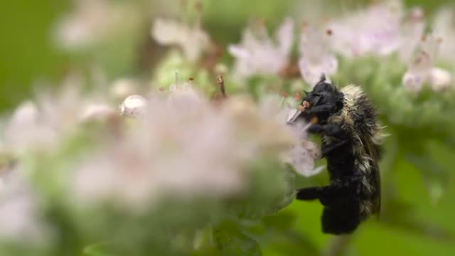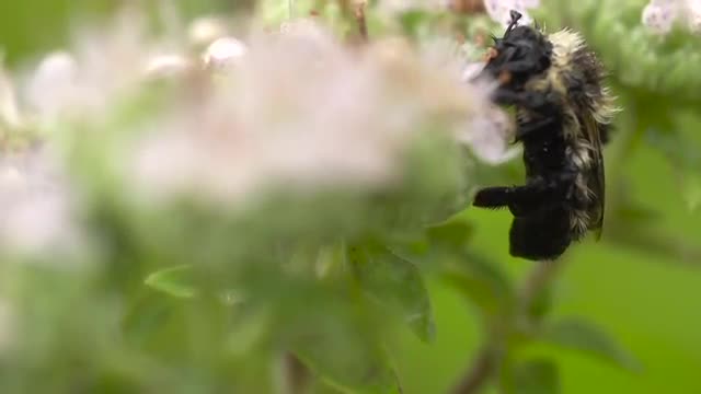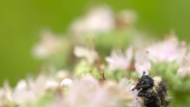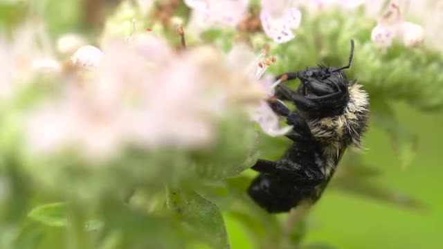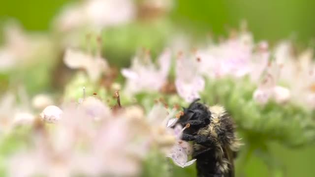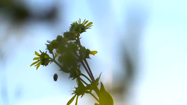 665230 - Bumble bee hovers around yellow Hypericum flower