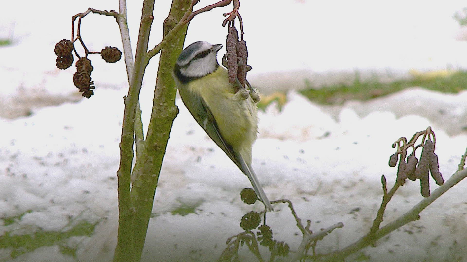 Great Titmouse Bird (Parus Major) Sitting on Tree Branch in Winter Forest, Shot in 4k Ultra Hd, Footage Can be Downsized or Cropped Without Quality Loss