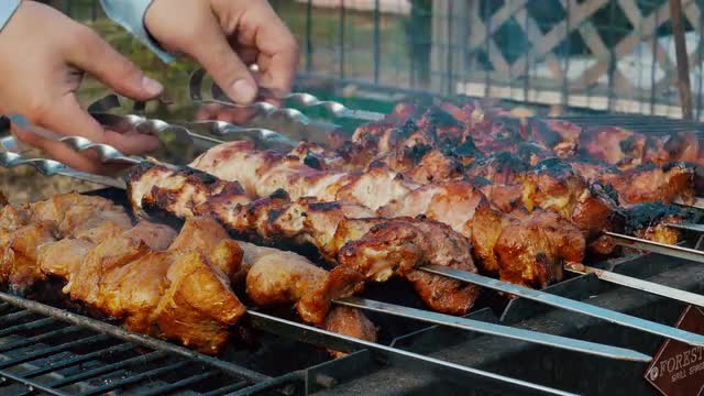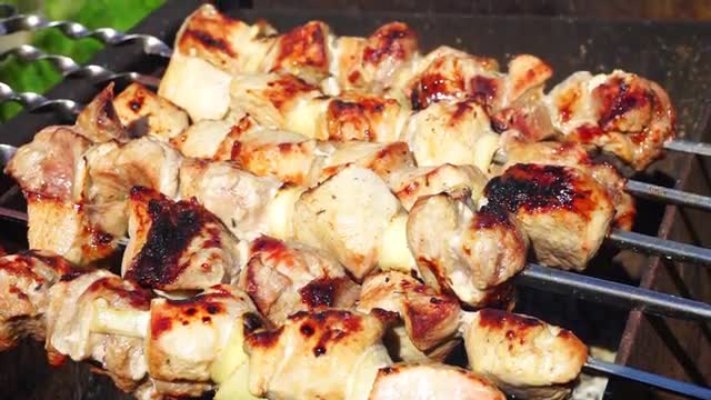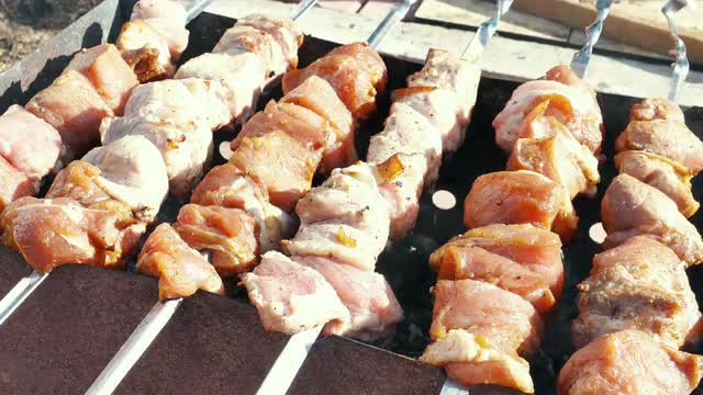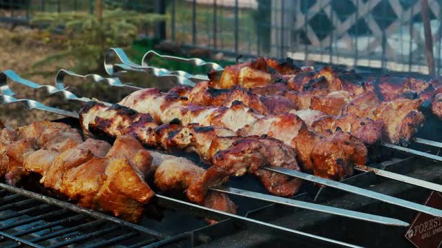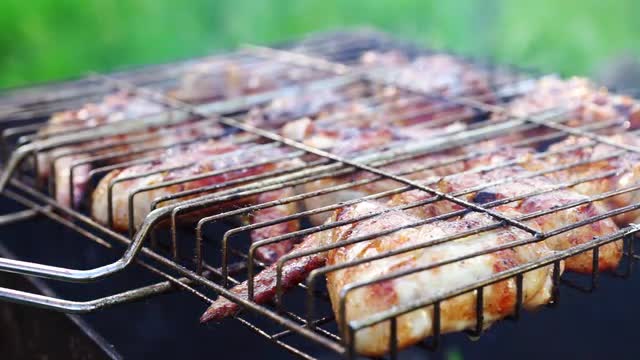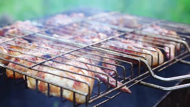 Grilled Meat Prepared on Barbeque Outdoors