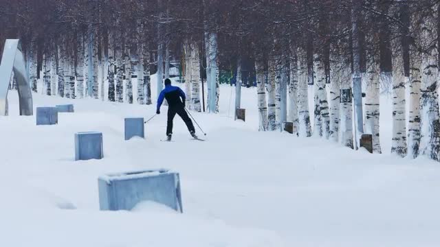 527407 - Skier Training in Winter Day, Petrozavodsk, Karelia, Russia