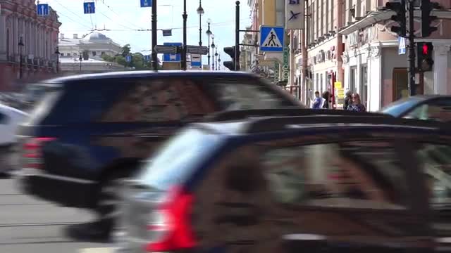 Day Traffic at Anichkov Bridge Across Fontanka River, St. Petersburg