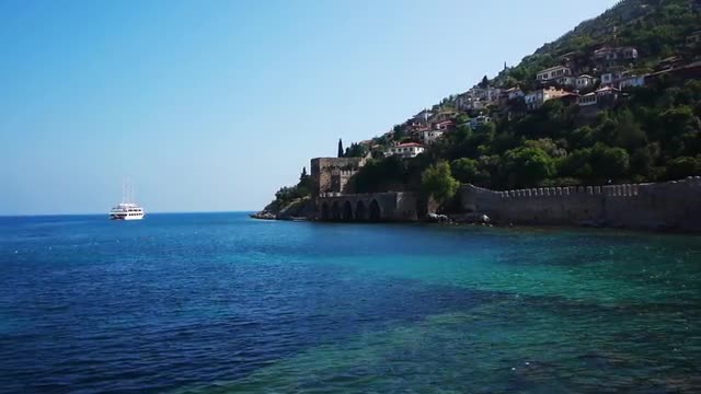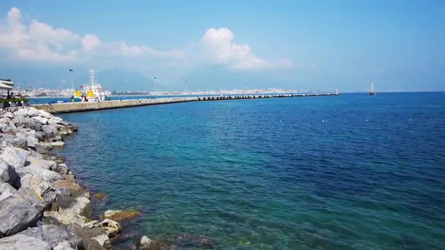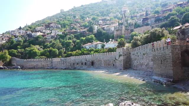 Alanya, Turkey - May 03, 2012: Resorts Hotels Beach Coastline With Tourists Relaxing. Millions of Tourists Visit Alanya Every Year With Its Population of Only 100 Thousand