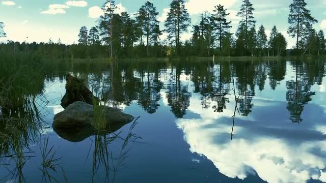 Stone and Grass in the Water Near Lake Shore, Shot in 4k Ultra hd