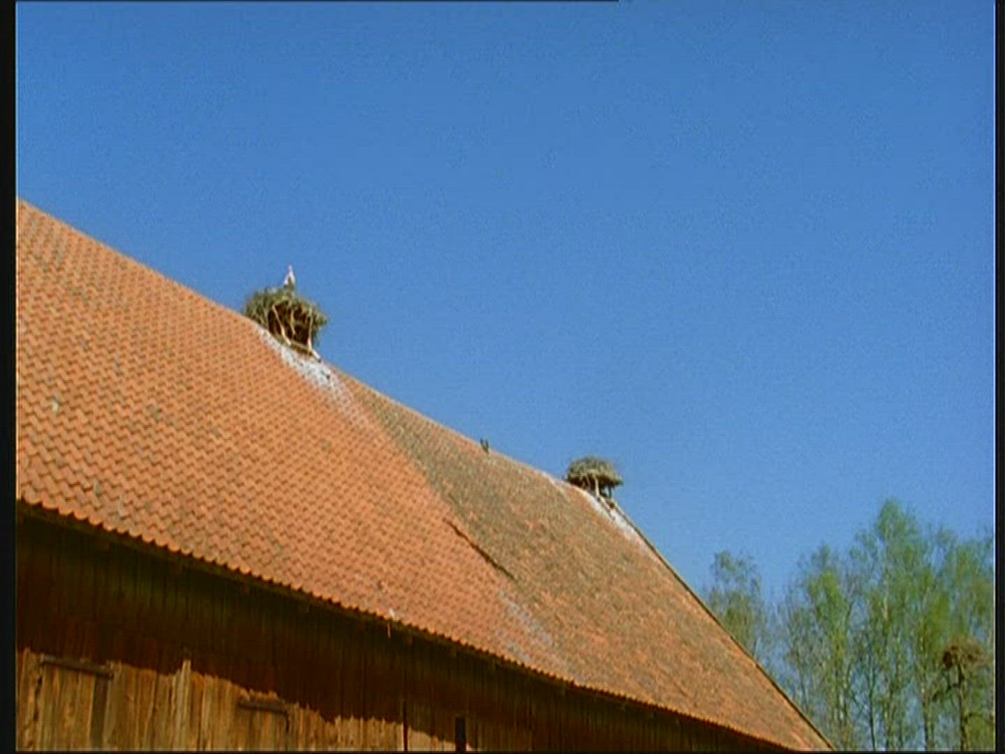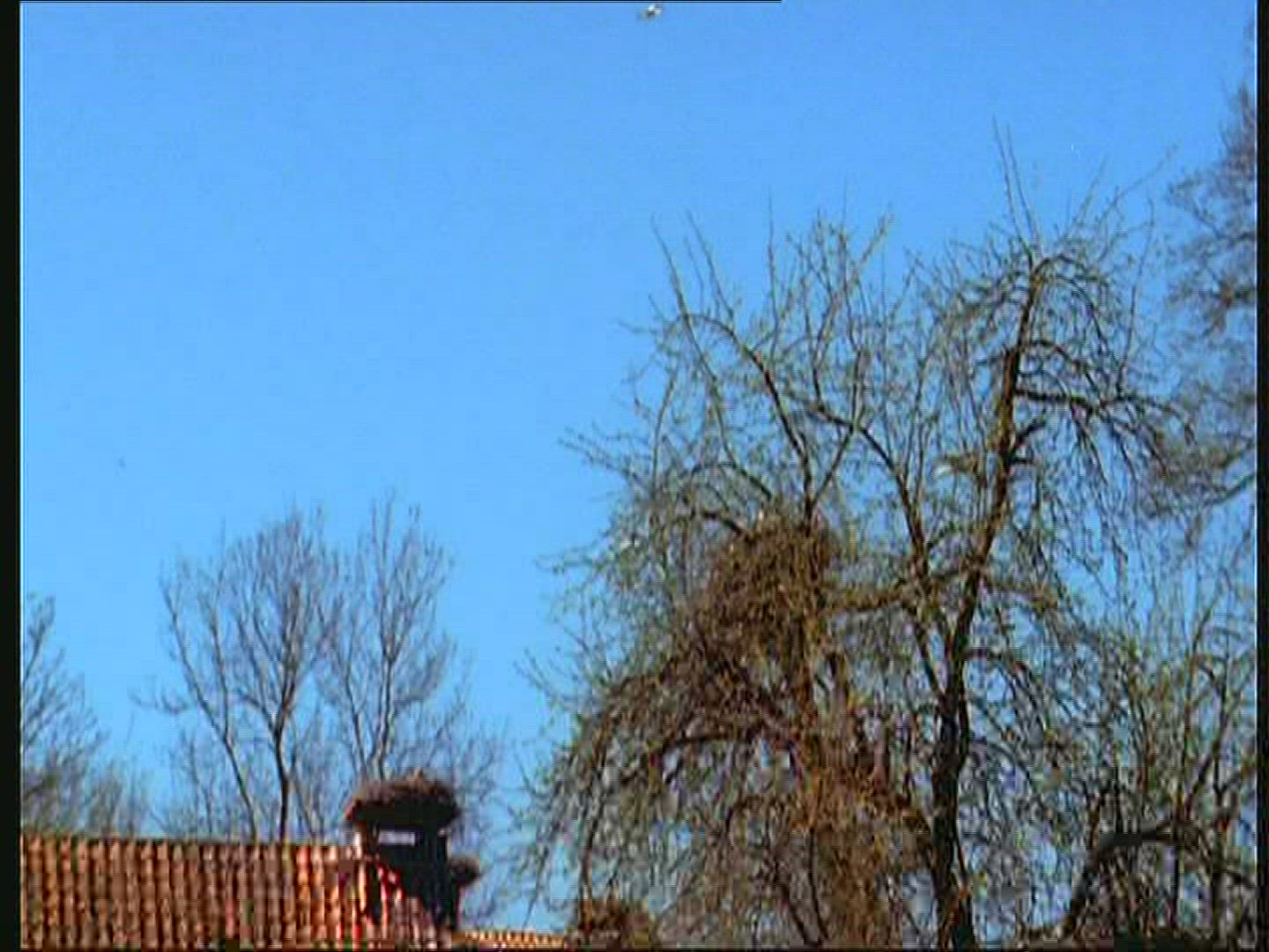 Bird Sitting on tv Antenna at Building Roof, Long Shot in 4k Ultra hd