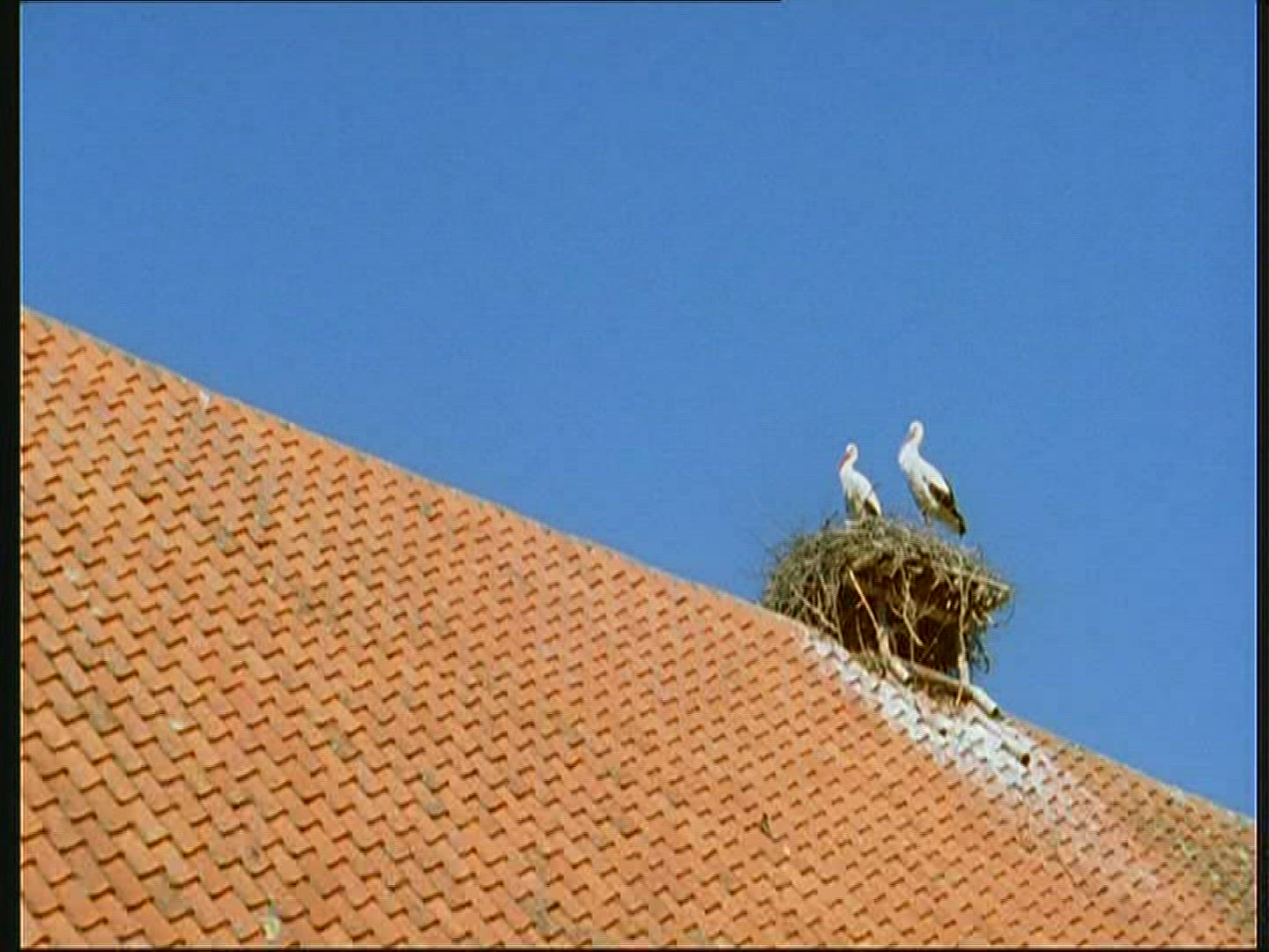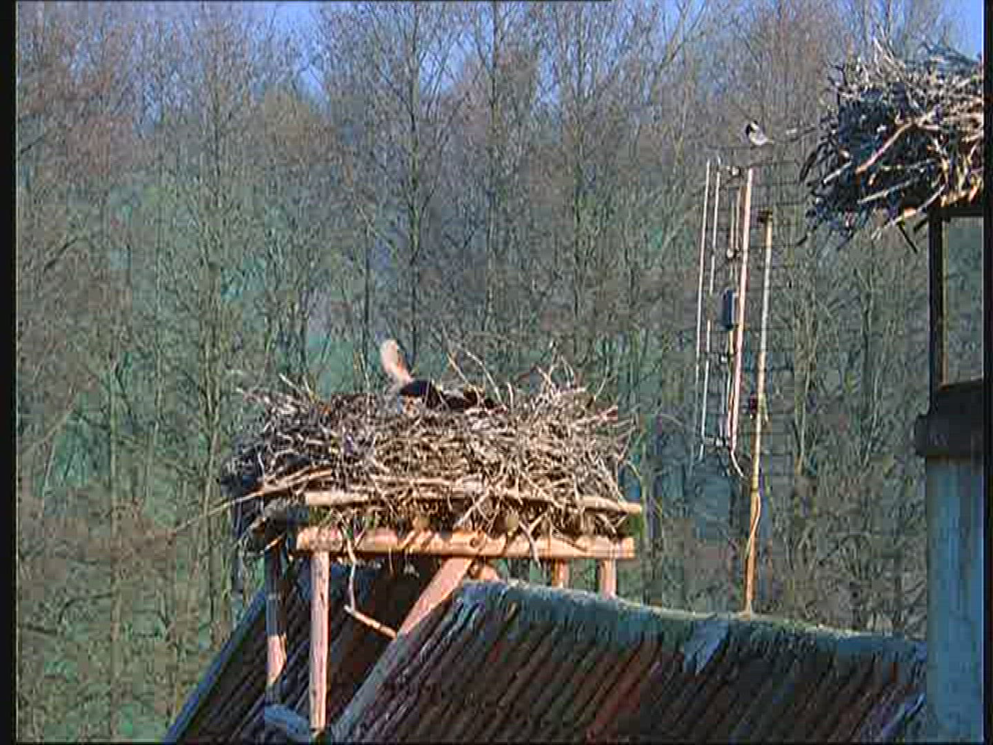 > Bird Sitting on tv Antenna at Building Roof