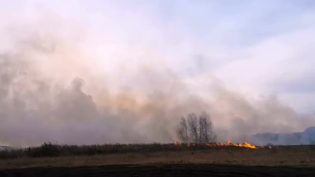 > Fire in Steppe Grass Fire Burns