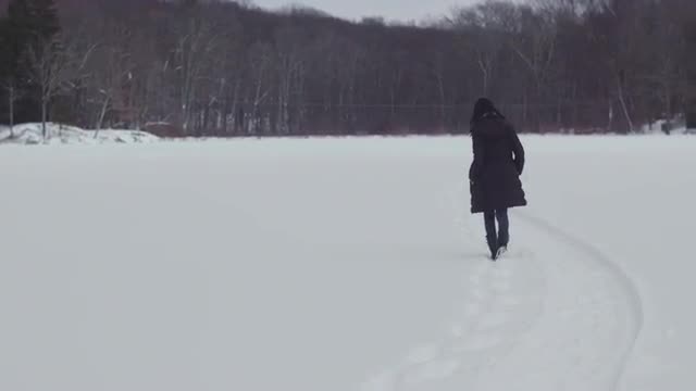 Girl Walking through Snow Covered Forest