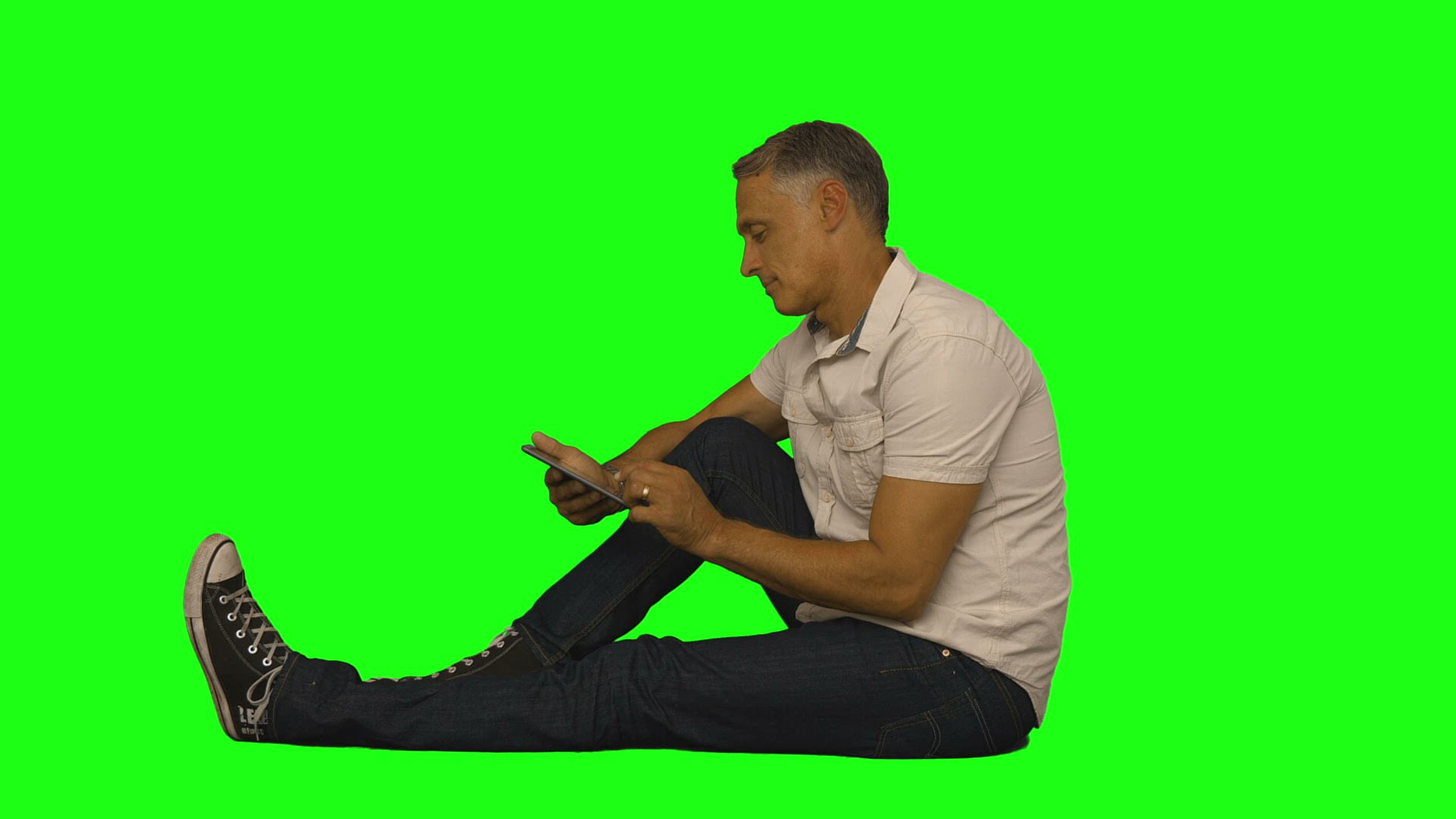 803616 - Business man making silly faces while making typing gestures on tablet