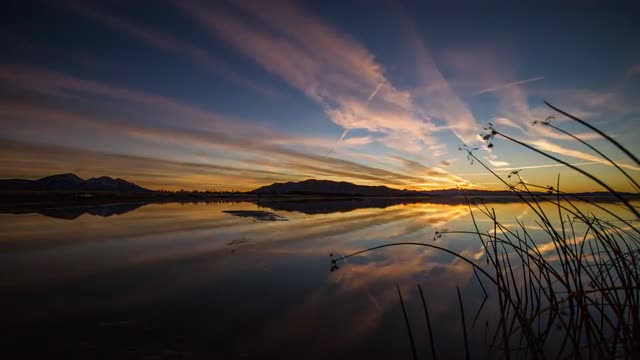 > Time-lapse during sunset at Sandy Beach on Utah Lake.