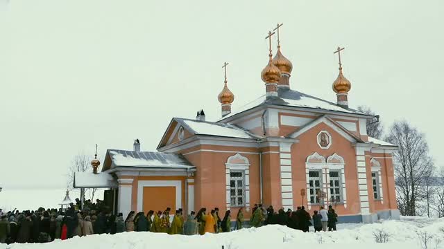 > Orthodox Church in Kondopoga, Russia, Slider Shot