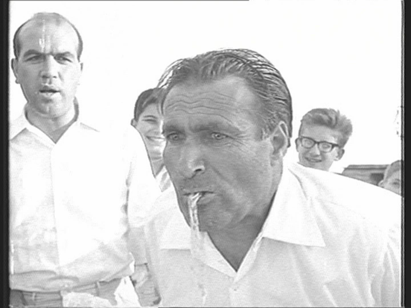 1964: Sweaty Italian man eating cake disturbed embarrassed.