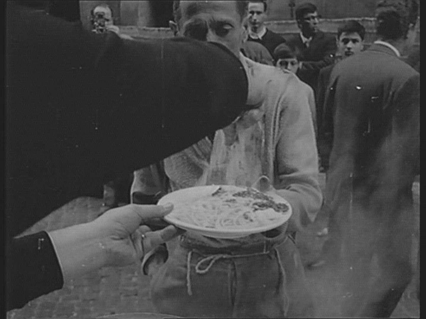 > 1964: Sweaty Italian man eating cake disturbed embarrassed.