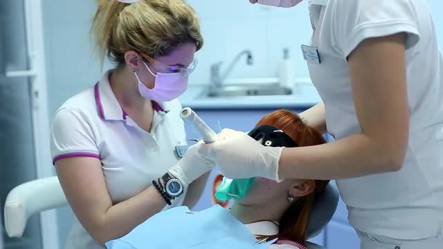 506346 - Doctor Check Your Teeth and Human Assistant Adjusts the Light in Dentistry
