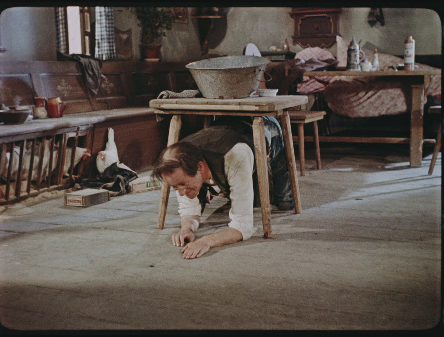 > 1956: Japanese comedy show funny geisha man dancing silly.