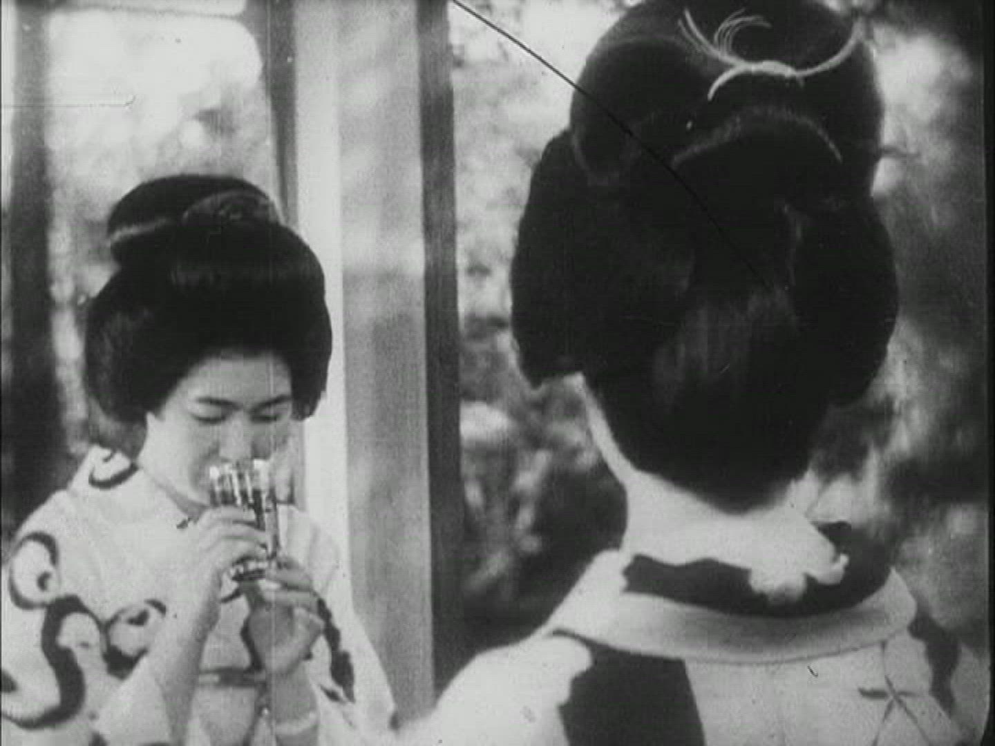 1956: Japanese opera show white face geisha man calm serene.