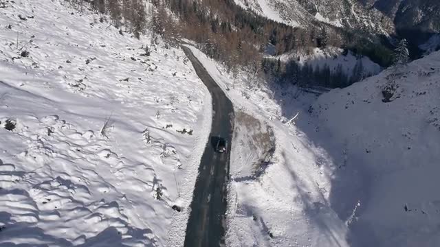 476217 - Aerial shot of helicopter shadow on snow covered mountain