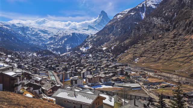 Motion time lapse Matterhorn Peak view of banner cloud, Zermatt