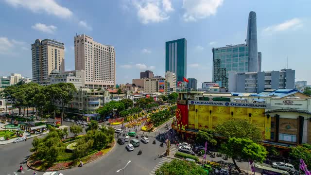 4K UHD Timelapse footage (200 frames) of traffic at a busy intersection in Bangkok, Thailand at night.