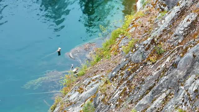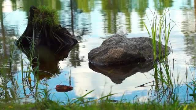 Lake Shore With Rocks, Grass and Blue Water, Shot in 4k Ultra hd