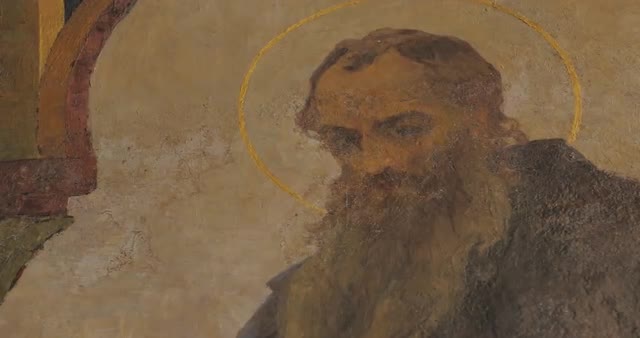 554307 - Nestor the Chronicler With Halo Image Painting Church of st Anthony and Theodosius Refectory Murals