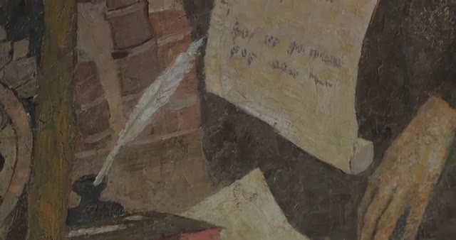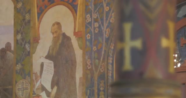 554315 - Nestor the Chronicler Image Painting Church of st Anthony and Theodosius Refectory Murals on the Wal