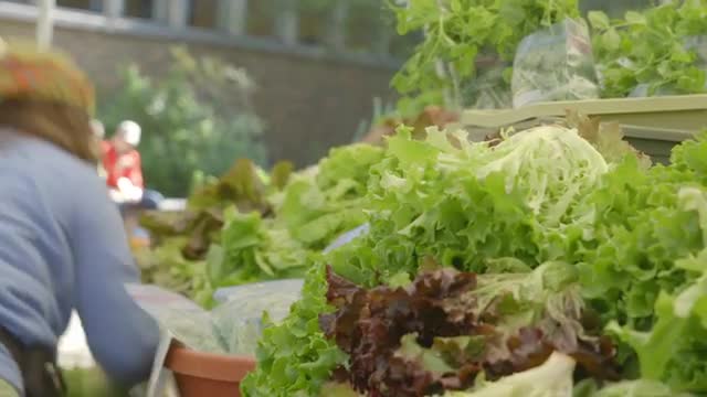 Hand-held shot of fresh apples at a local farmers market in Portland, OR.