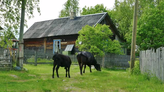 Ferewood Near Old Wooden Barrack Houses in Russian Village Kojvuselga, Landscape, Shot in 4k Ultra hd