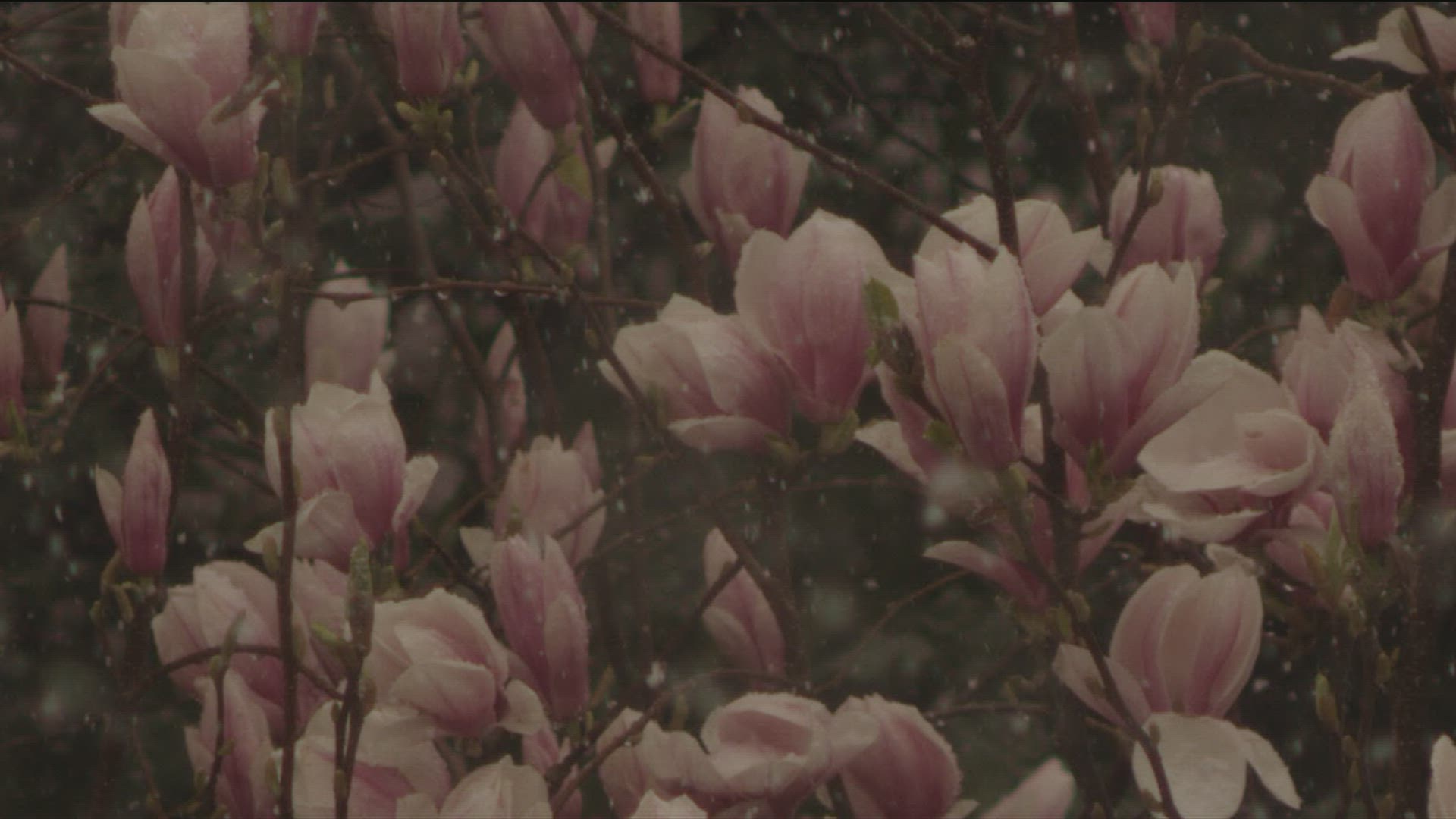 Old Crow Sitting at Dry Pine Tree in a Heavy Snowfall, Extreme Long Shot in 4k Ultra High Definition