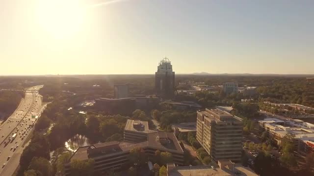 v86 Flying low over Sandy Springs panning right.