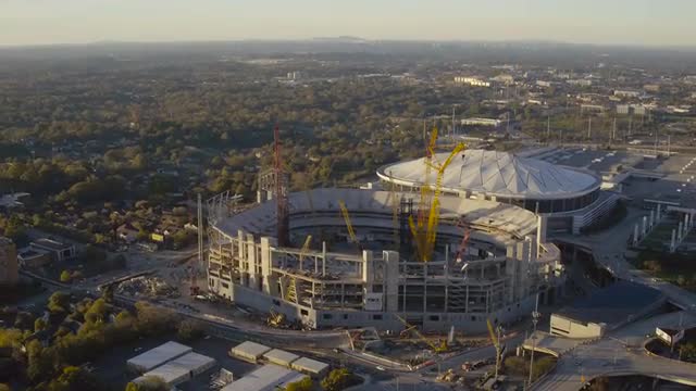 999895 - Atlanta, Georgia circa-2017, Daytime aerial shot of downtown Atlanta. Shot with Cineflex and RED Ep