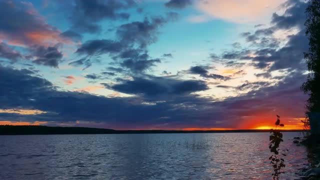 Idyllic View of Bright Sunset at Lake Shore, Shot in 4k Ultra hd