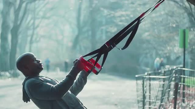 > Very Fit Male Doing TRX Rows