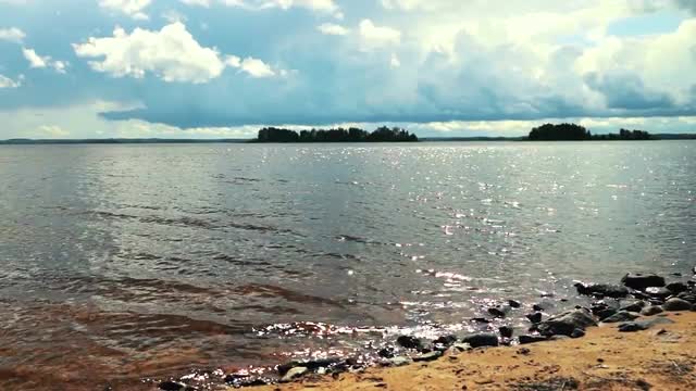 Water Splashes to the Stones at the Lake Shore, Low Angle Closeup 4k Ultra hd Shot..