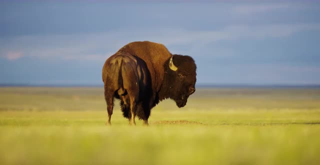 529545 - Bison looks over its should back at the camera