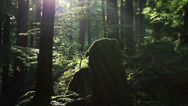 the Sun's Rays Through the Fog in the Forest at Sunrise