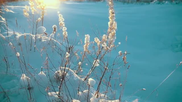Dry Grass Under Snow in Counter Sunlight
