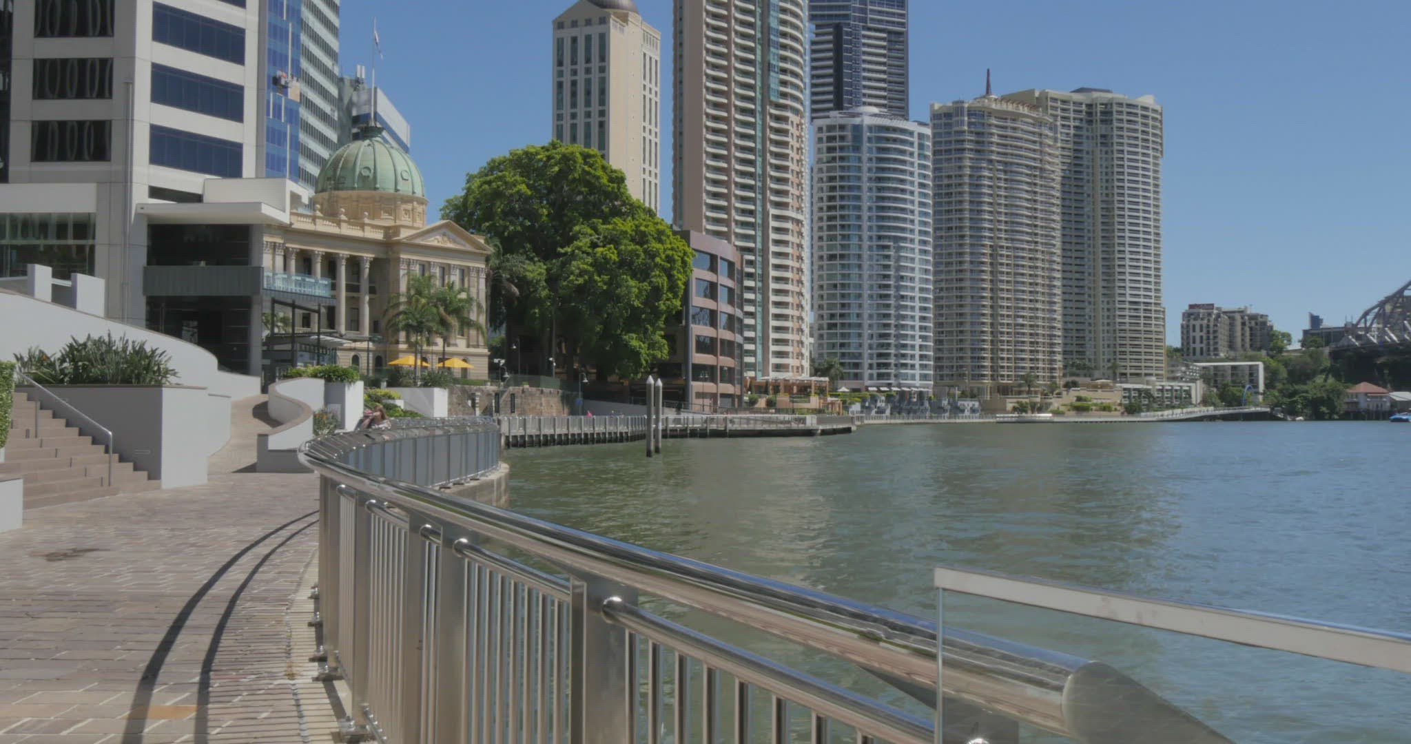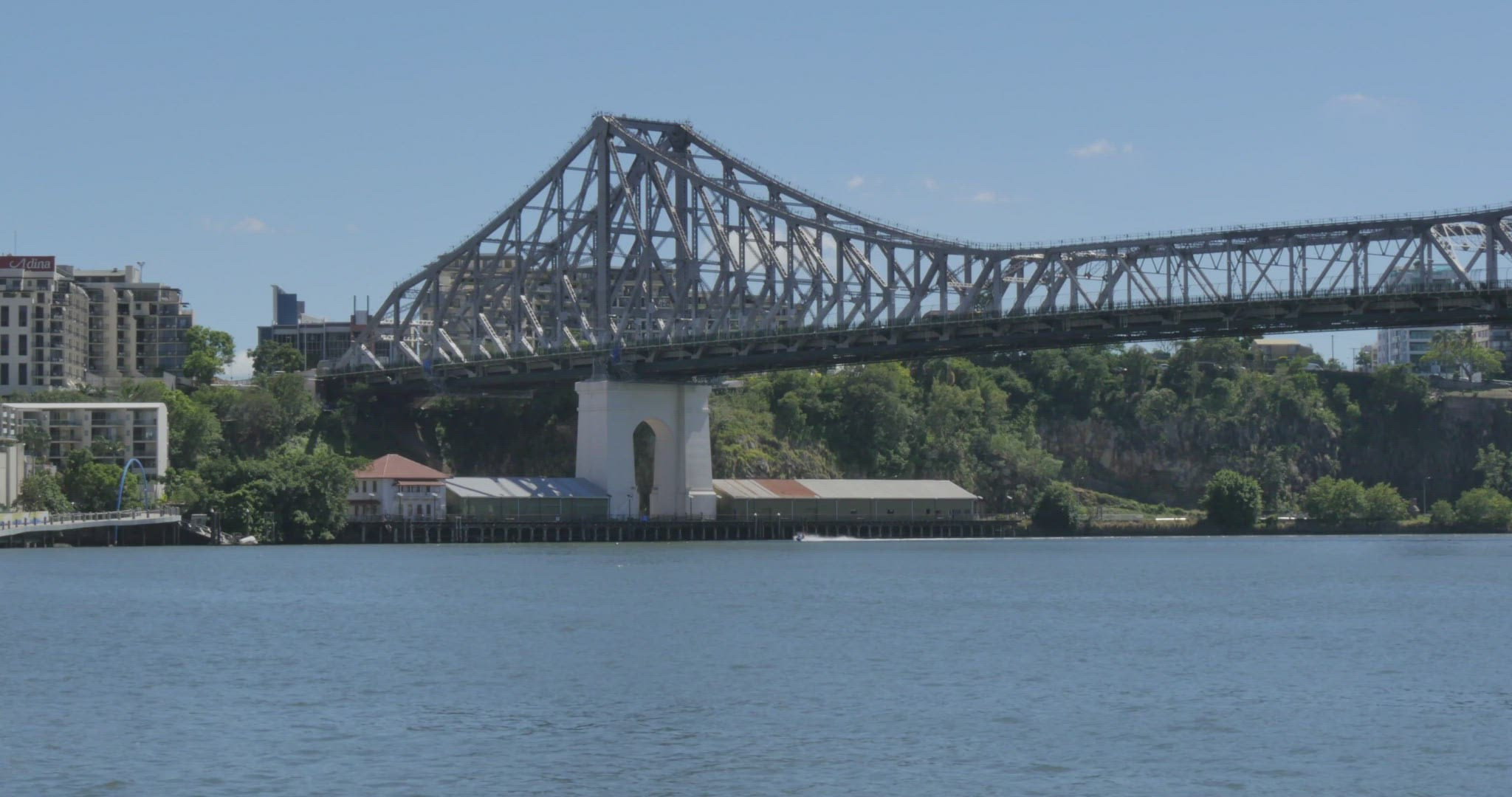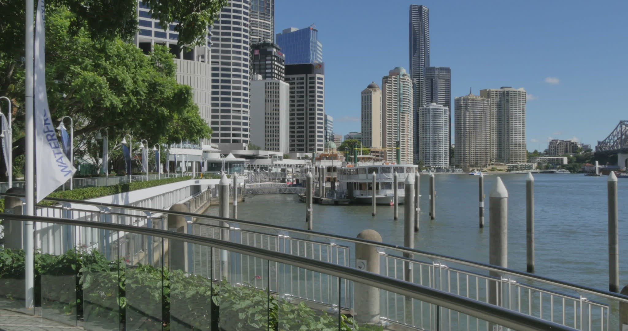 A time-lapse shot of Brisbane's cityscape with a busy motorway captured at twilight.