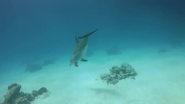 Dolphins Swims Near Divers, underwater scene
