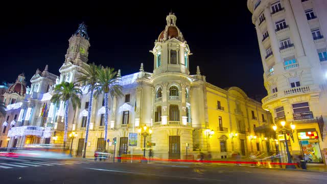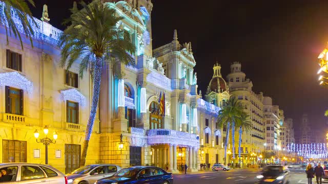 Blue Light Ray From Bell Tower Big Golden Dome Cross on Top People Are Walking at Fir-Tree Installed