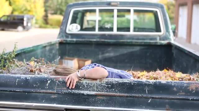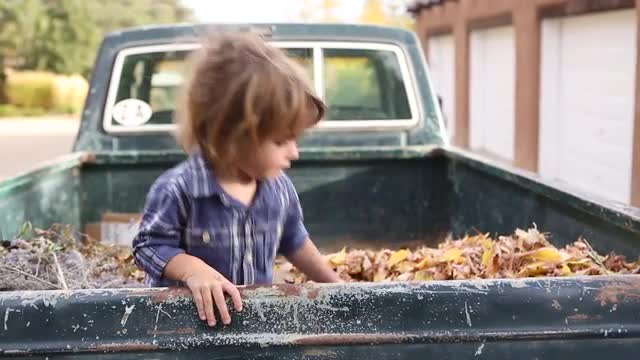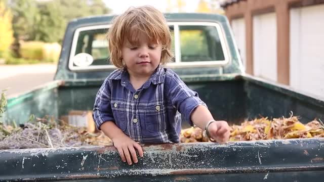 > Caucasian children playing in truck