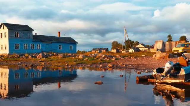 Lonely Wooden House on the Sea Shore, Calm Sunrise Landscape Shot in 4k Ultra hd