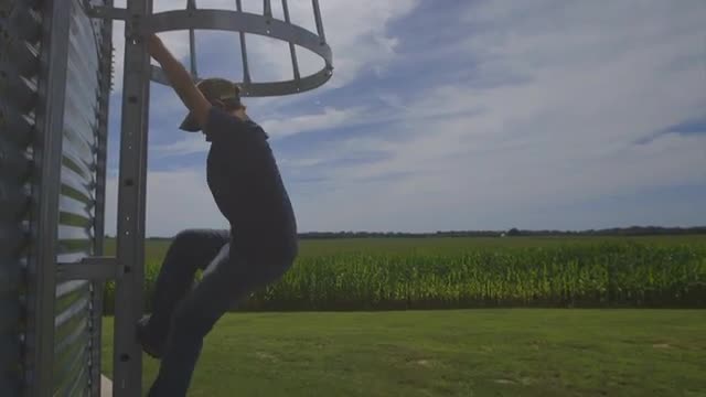 531297 - Caucasian boy climbing silo