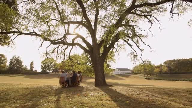 > Friends eating at dinner party