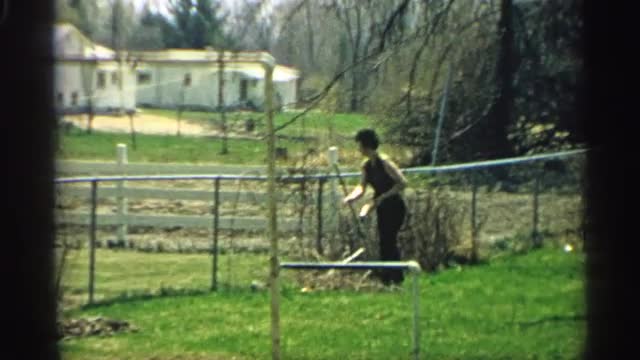 725880 - 1959: woman adjusts bare branches before lifting hedge shears in garden ARIZONA