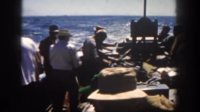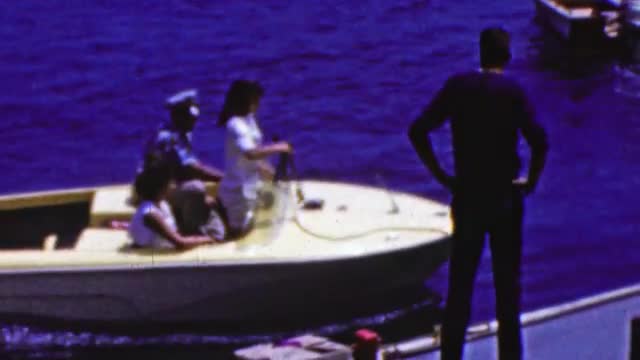> 1962: Blue seas party motor boating harbor seaside port.